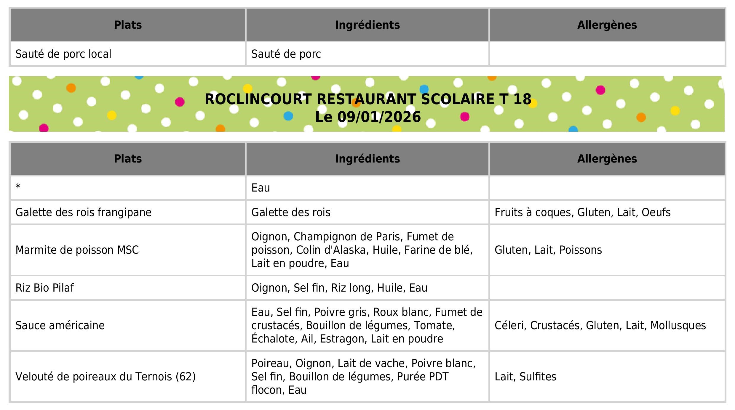 👉 Lien vers prestataire : API RESTAURATION👉 Lien vers fichier PDF : Semaine 02 du 05/01/2026 au 09/01/2026👉 Lien vers fichier PDF : Semaine 02 du 06/01/2025 au 10/01/2025 (Allergènes) |